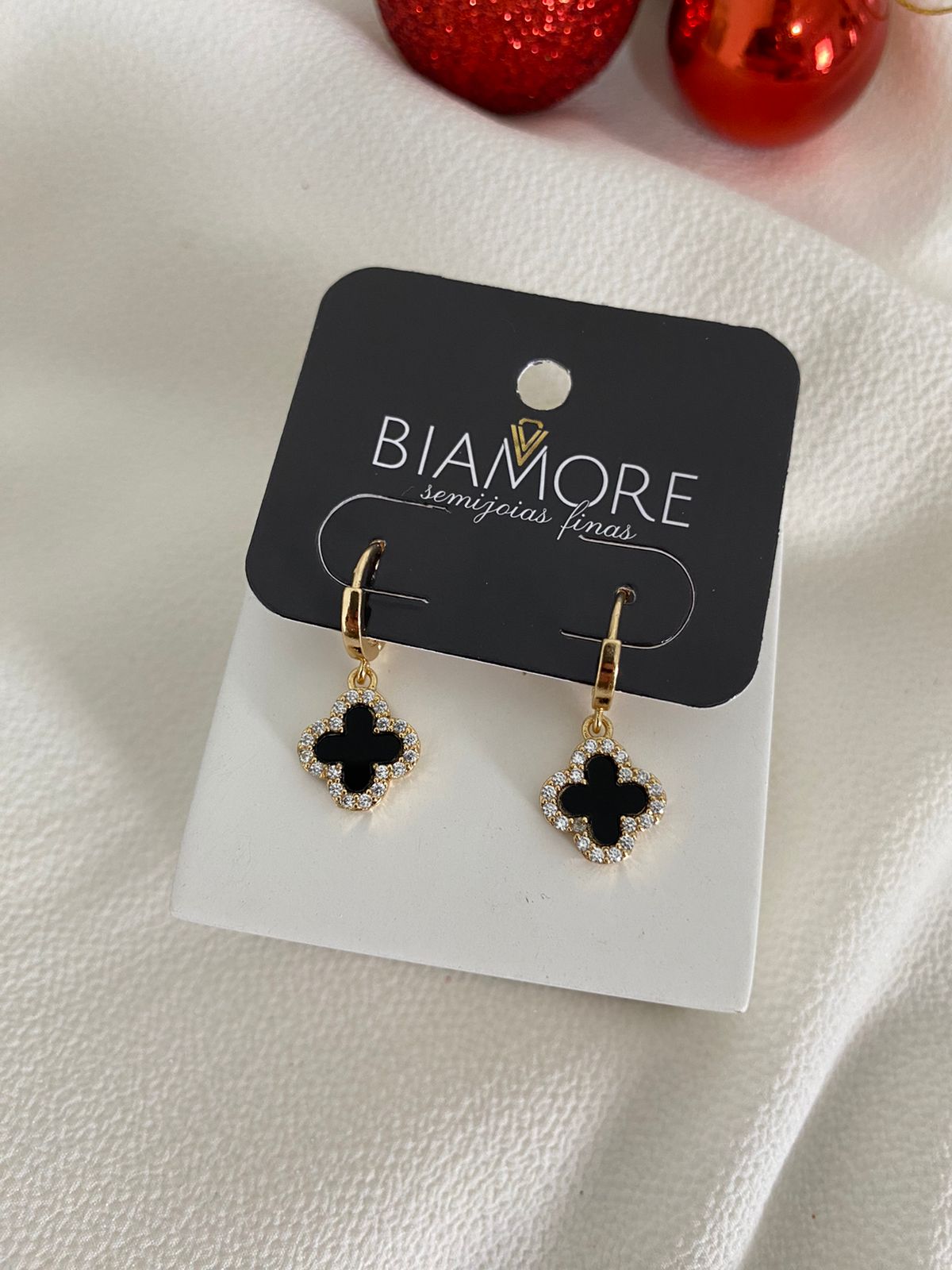 O QUERIDINHO ESTA DE VOLTA, BRINCO INSPIRAÇÃO NO TREVO PRETO COM MICRO ZIRCONIA CRISTAL.