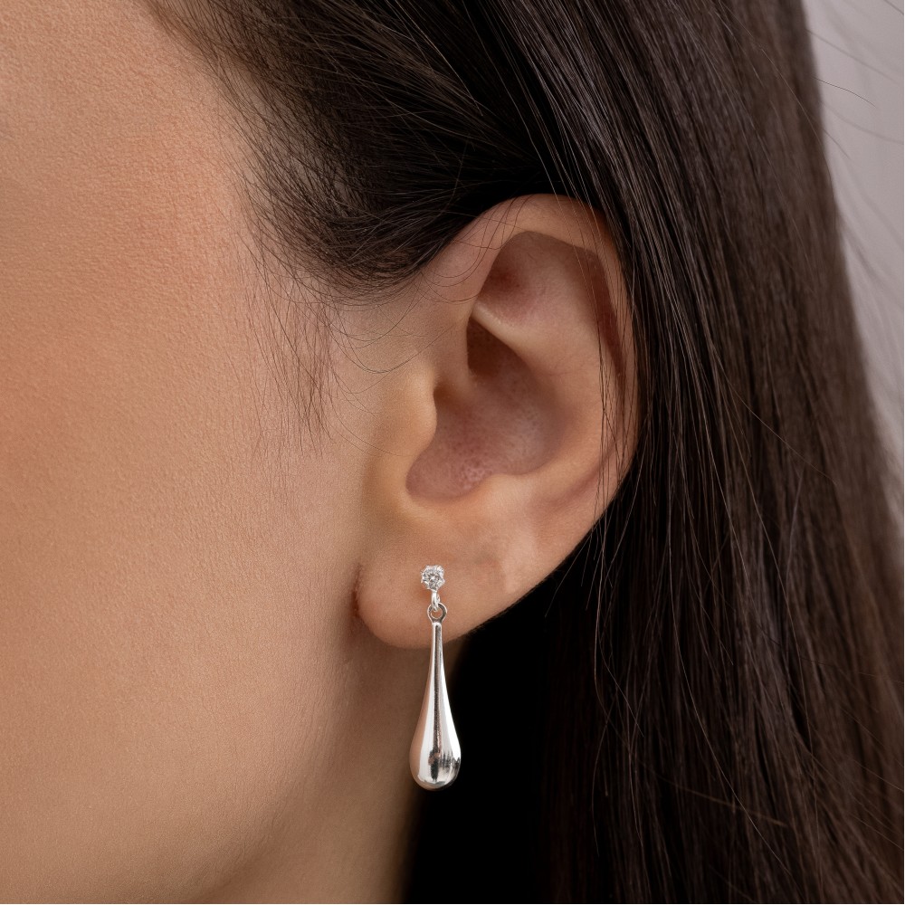 BRINCO PRATA 925 GOTA PUFFER COM PEDRA ZIRCONIA CRISTAL