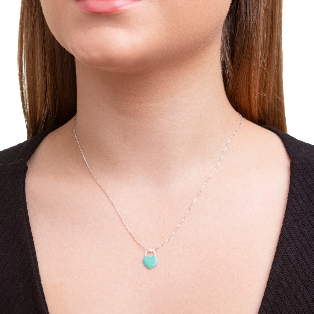 GARGANTILHA CORAÇÃO FOREVER VERDE AGUA DUPLO