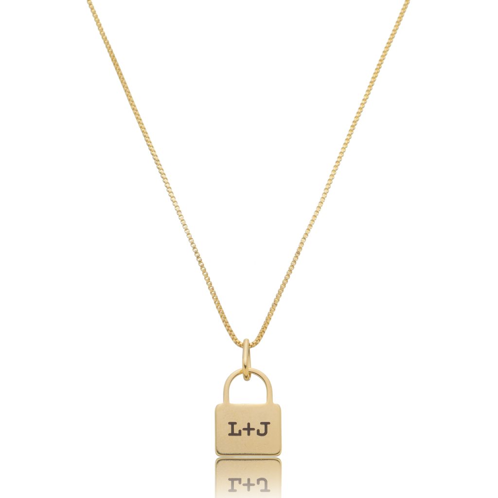 Este colar apresenta um pingente em forma de um pequeno cadeado, gravado com personalizados iniciais e adornado com delicados detalhes de resina. Uma peça única que simboliza conexões especiais e momentos inesquecíveis, trazendo um toque de sofisticação e personalidade ao seu estilo.