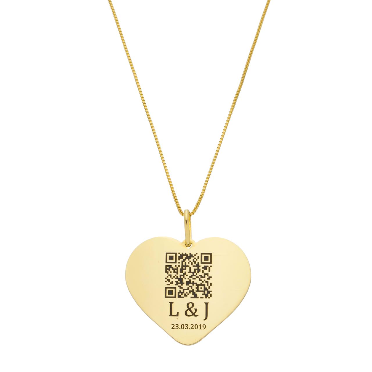 Apresentamos nosso sofisticado pingente feminino de coração, gravado com um QR Code exclusivo, sua inicial e uma data especial, tornando essa peça uma verdadeira celebração de momentos únicos. Com detalhes de resina que realçam sua beleza, este pingente combina modernidade e emoção em um só acessório. É a joia perfeita para eternizar memórias inesquecíveis.